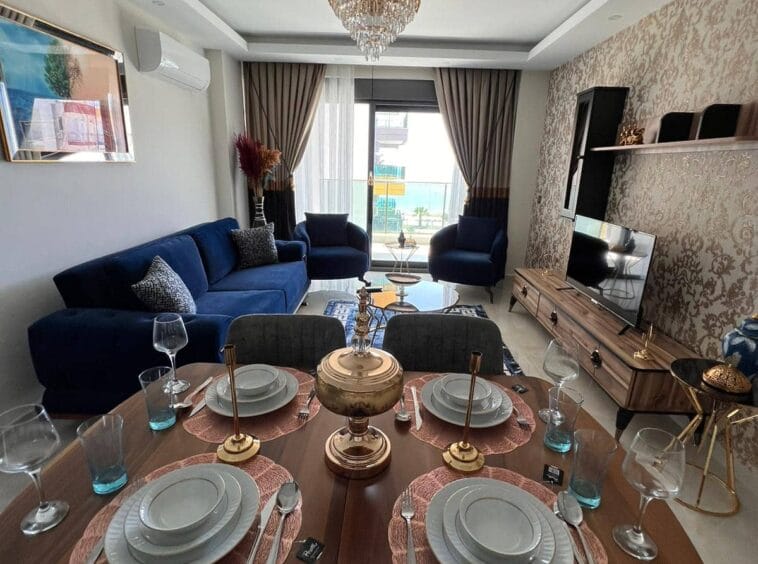 این آپارتمان دو خوابه مبله با منظرهای خیرهکننده از دریا در منطقهٔ محموتلار، الانیا واقع شده است. با مساحت 95 متر مربع، دو سرویس بهداشتی و دو تراس، این آپارتمان امکاناتی را برای زندگی راحت و لذت بخش فراهم میکند.